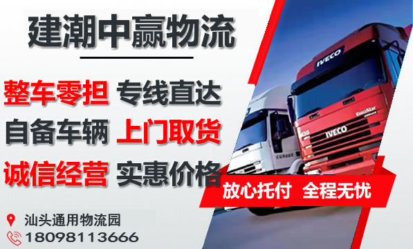 3、汕头到马鞍山物流专线价格优惠、运货及时,欢迎来人来电咨询汕头到马鞍山的物流价格、运费和报价等相关问题,建潮中赢物流将全力为您提供合理的运输方案。